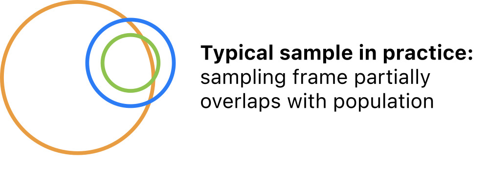 More common in practice is a random sample from a sampling frame that overlaps but does not cover the population.